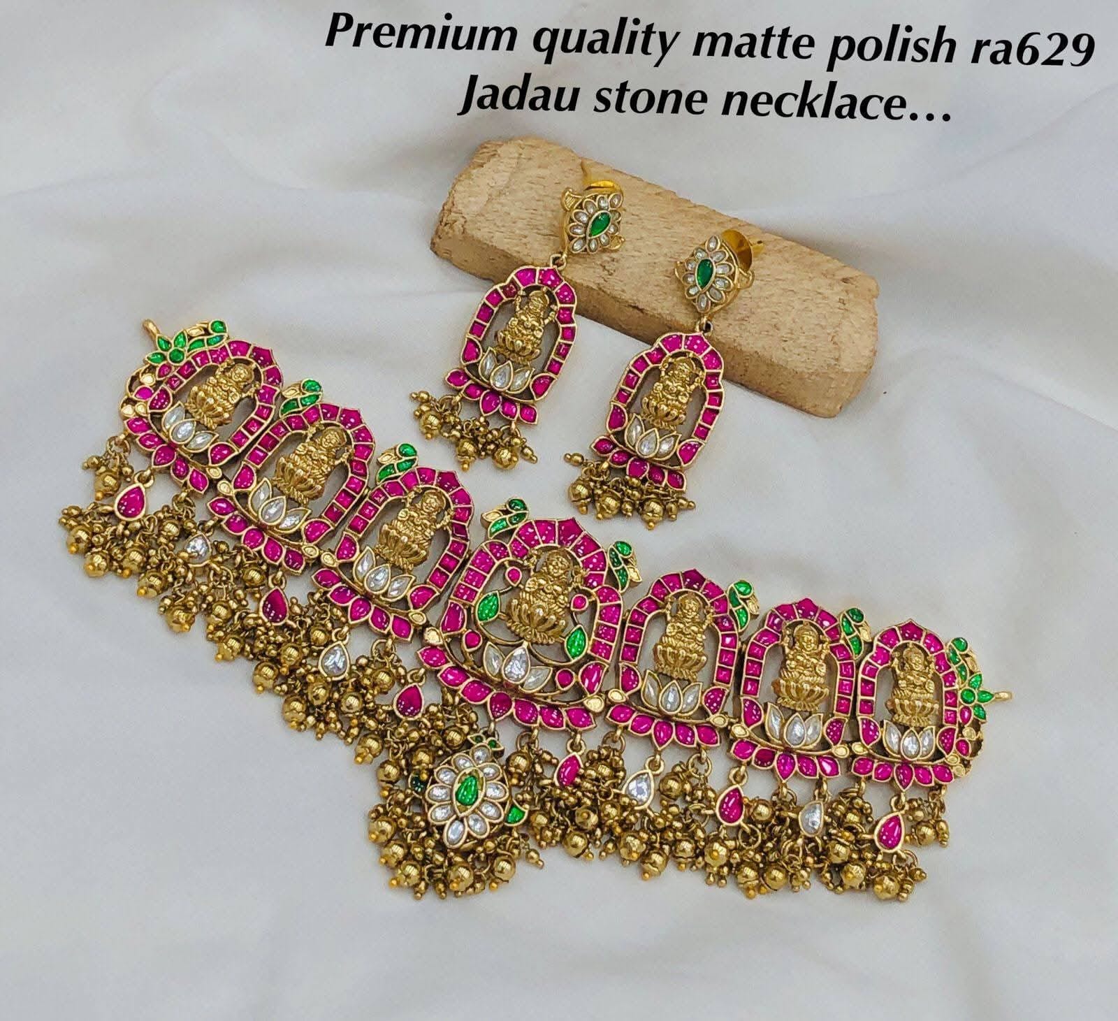Embrace timeless tradition with the Premium Quality Antique Finish Short Haram – a beautifully crafted piece that exudes heritage and elegance. Designed in a classic South Indian style, this short haram features intricate detailing, temple-inspired motifs, and a luxurious antique gold finish that brings a regal charm to any ethnic ensemble.